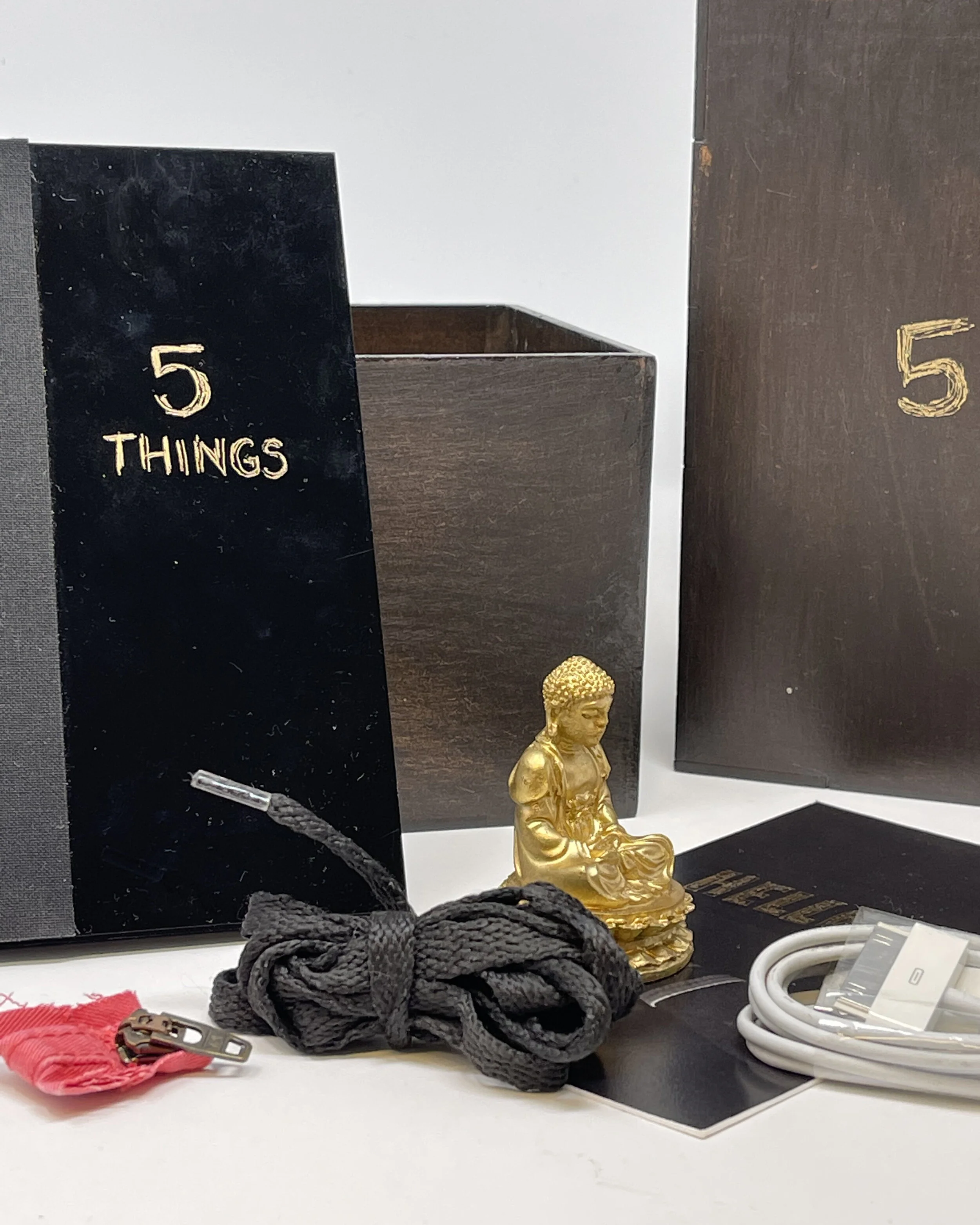 5 THINGS is a book inspired by Five Things, a podcast about the objects that tell our stories. However, listening to a one-on-one conversation about five physical objects on a podcast is a very different experience than reading about five objects from a book. 5 Things is a book form that inserts itself somewhere in the middle of a podcast and a book. It’s an immersive experience that can tell a story on its own. Each object featured in 5 Things has a corresponding item and poem. Each item and poem serves as a tangible and intangible representation of a real-life object. Each poem, on the surface, is about one of the items but explores deeper themes of sexuality, spirituality, and growing up.